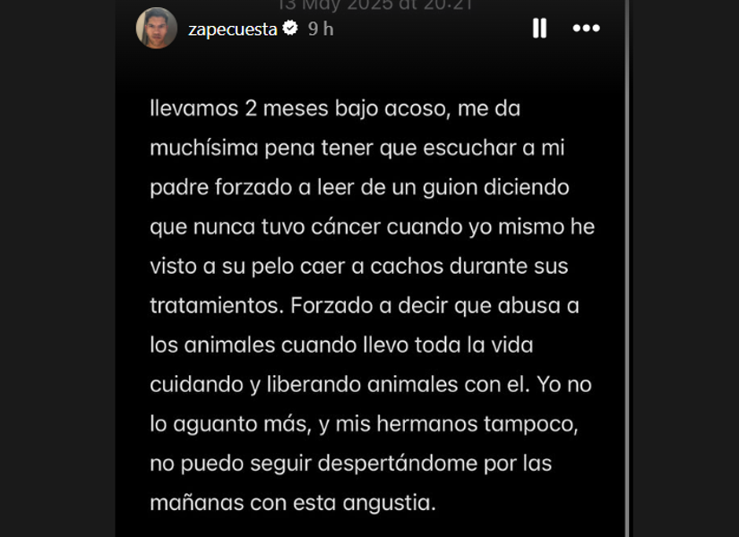 Sin embargo, la tormenta mediática que se cernía sobre su imagen dio un giro de 180 grados, cuando su propio hijo, Zape Cuesta, defendió a través de sus redes sociales al conocido divulgador tras sus demoledoras declaraciones.