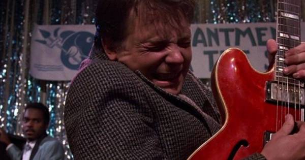 La escena de Marty McFly interpretando la canción de Chuck Berry en el 'Encantamiento bajo el mar' es una de la más recordadas de la historia. Según la película, los acordes de la genial interpretación de Marty, hicieron que el supuesto primo de Chuck Berry, Marvin, se fijara en la melodía y llamara a su pariente para anunciarle que había encontrado el sonido que estaba buscando.