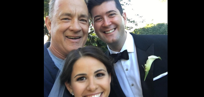 Hanks se encontraba haciendo deporte cuando vio a los novios y pensó que sería una buena idea felicitarlos. La laureada estrella además se tomó tiempo para saludar a la familia, que en agradecimiento lo invitó a la celebración.