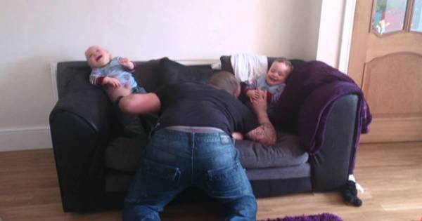 Trillizos se ríen a carcajadas en pleno 'ataque' de cosquillas