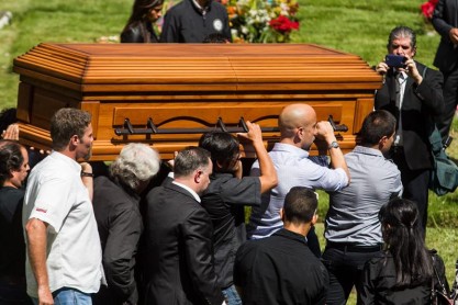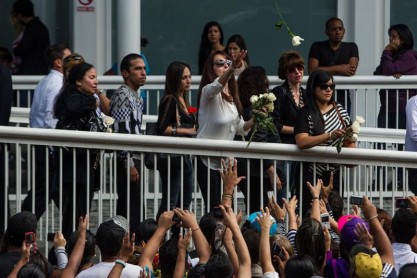 El cortejo funerario fue encabezado por los padres de la actriz, Rafael y Enna, y varios amigos que lanzaron rosas blancas y rojas a la gente que se acercó a apoyar a los familiares y que estalló en aplausos al ver salir los féretros.