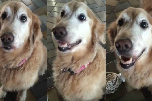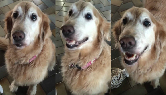 Gracias a los gritos de la veterinaria, la suertuda golden retriever comenzó a brincar y mover la cola, lo que bien podría parecer una celebración.