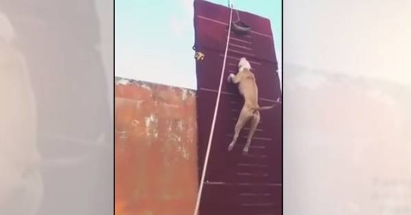 Un video en Youtube muestra a este joven pitbull realizar un increíble salto a 5 metros de altura por un muro.