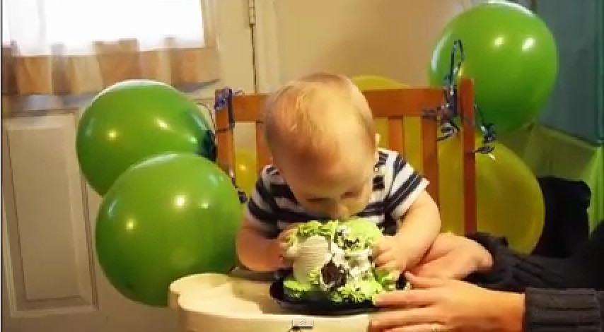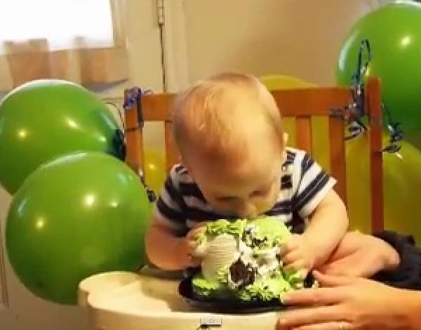 El pequeño Bauer estaba celebrando su primer cumpleaños y en este video casero subido a YouTube no queda la menor duda de que la torta fue lo que más llamó su atención.
