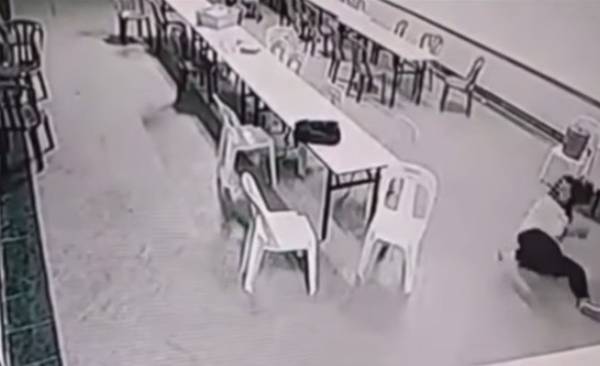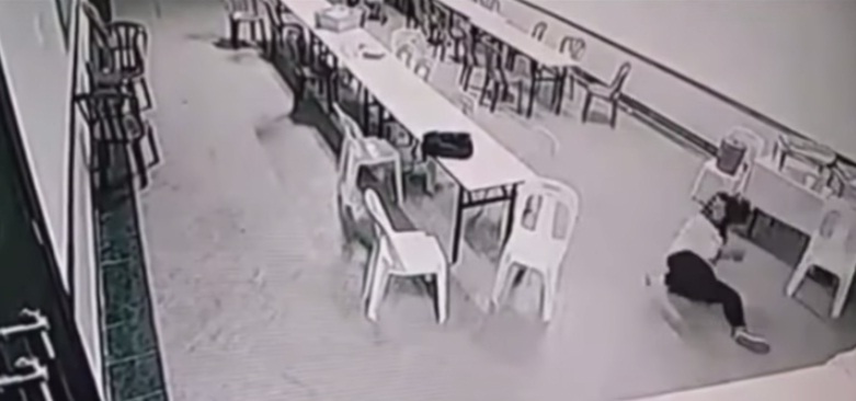 Mesas y sillas que se mueven solas en un comedor es la temática del clip, grabado en Malas