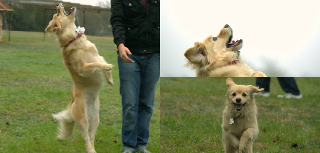 Este video está poniendo de cabeza a las redes sociales, debido a que muestra en cámara lenta el momento en que un perro corre y brinca por un premio.