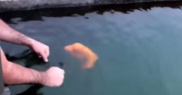 En este video proveniente de rusia. Un hombre juega y acaricia al pez, incluso lo agarra y lanza al agua varias veces, el animal regresa hacia él para que repita la divertida acción una y otra vez.
