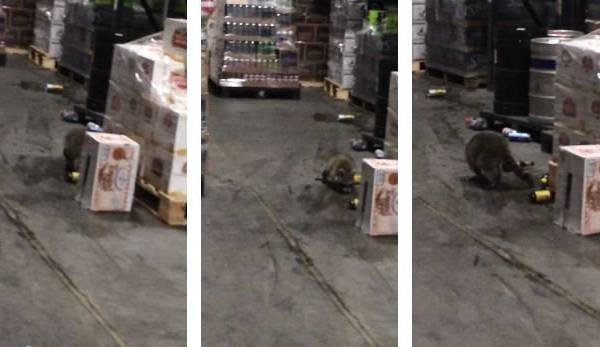 Uno de estos animales fue grabado por una cámara de seguridad en un almacén de licores de Brooklyn cuando estaba completamente borracho. Los movimientos que hacía y su incapacidad de ir en línea recta se debieron a que el mapache bebió más de la cuenta de las botellas que se habían caído al suelo.
