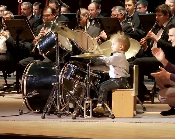 Este es el caso de Lionia Shilovski, un niño ruso de 3 años que toca la batería con la Orquesta Sinfónica de Novosibirsk.