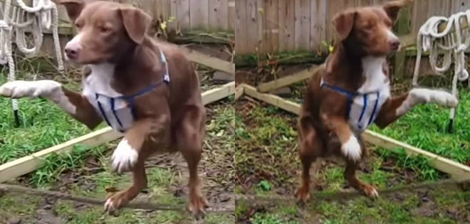 Ozzy lo hace como todo un profesional, puede sostener su cuerpo en dos patas sobre un cuerda floja.