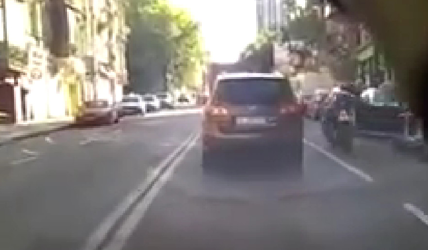 (VIDEO) Una puerta abierta inesperadamente casi mata a este motociclista