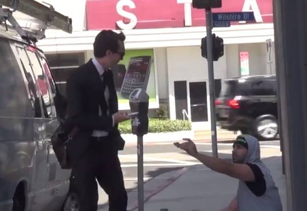 (VIDEO) La reacción de transeúntes cuando un mendigo les da dinero