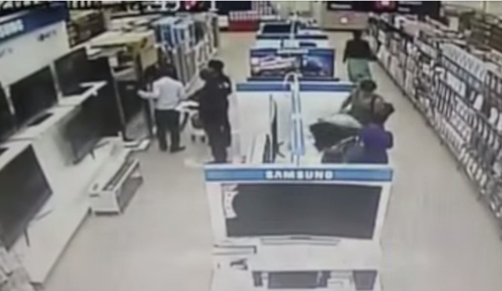 Las cámaras de un centro comercial registran multitud de sucesos sorprendentes. Horas y horas de grabación dan para mucho, incluso, para captar el robo más surrealista de la historia. En un video, subido a YouTube, se muestra cómo una mujer entra en un almacén, esconde un televisor entre sus piernas y sale del establecimiento con total impunidad.