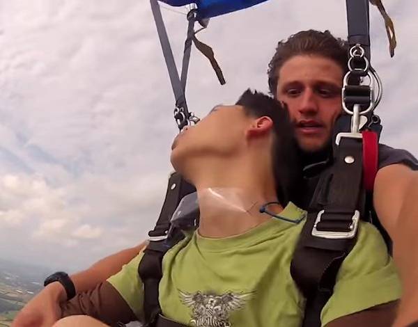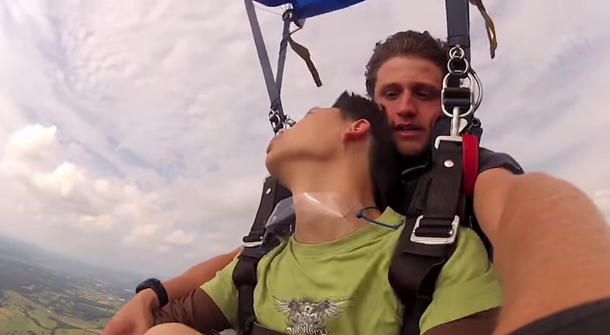 Un joven de ascendencia asiática perdió por segundos el conocimiento mientras realizaba un salto en paracaídas.
