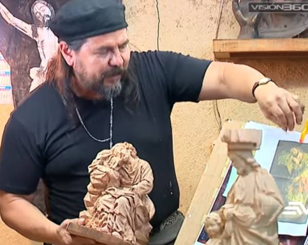Escultores de la parroquia San Antonio de Ibarra tallan la madera para realizar verdaderas obras de arte.