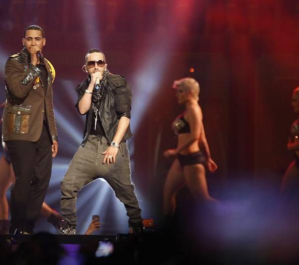 Yandel (c) en una presentación junto a Don Omar durante el concierto 'Hecho en Puerto Rico', el pasado 3 de mayo. Foto: EFE