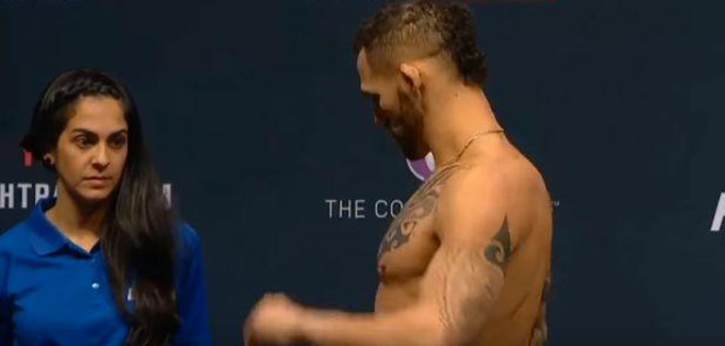 Sheila se mostró muy a gusto durante la ceremonia de pesaje de la UFC Fight Night 80. Las cámaras de televisión captaron sus reacciones mientras los luchadores se desprendían de sus prendas antes de subir a la balanza. El canal de YouTube UFC'Rotch editó sus imágenes: el resultado fue un viral de casi dos millones de visitas.
