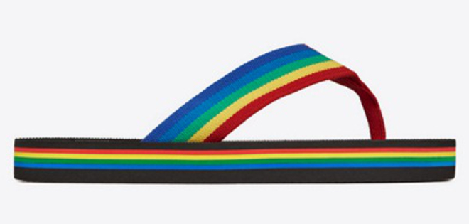 La famosa casa francesa de moda Yves Saint Laurent presentó el 21 de enero unas zapatillas multicolor "para la playa", las que cuestan 500 dólares.