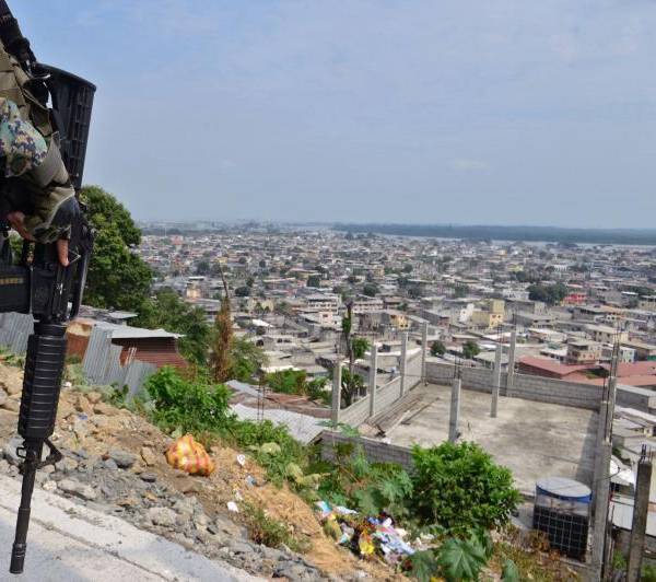 Un militar patrulla en una zona de Durán donde a violencia se ha incrementado en los últimos años.( )