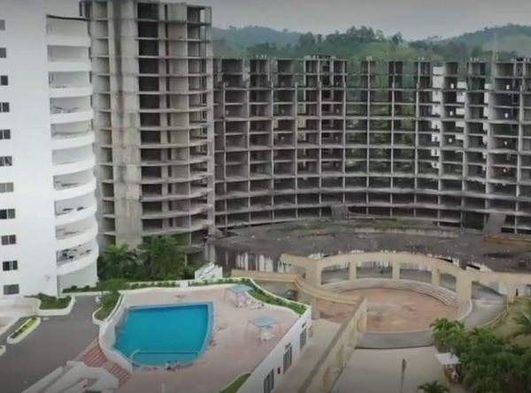 En Quito, el complejo Portal de Granada de 333 departamentos, casi terminados, costó 27 millones de dólares. Hoy, todo luce abandonado.
