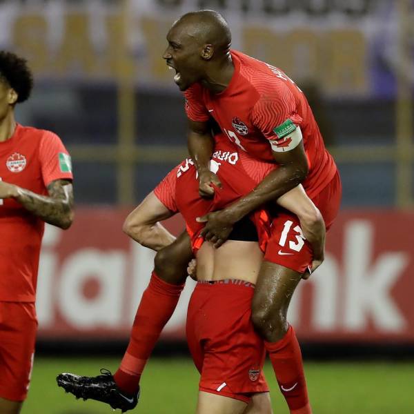 Fue el primer tanto del encuentro, Atiba Hutchinson cabeceó el balón, este pegó en el vertical le volvió a pegar a él, rebotó en su rival y se metió en el arco salvadoreño.