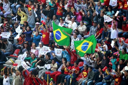 Los entusiastas seguidores ocupan más de un tercio de las gradas de este emblemático estadio, que tiene capacidad para 105.000 personas.