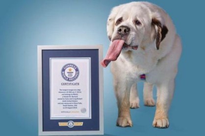 Un perro de raza San Bernardo de Estados Unidos logró el Record Mundial guinneess, por tener la lengua más larga del mundo, tiene 8 años y su lengua mide 18,58 centímetros (7,31 pulgadas).