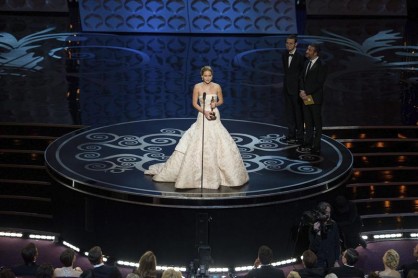 La actriz estadounidense Jennifer Lawrence recibe el Óscar a la mejor actriz por su papel en -