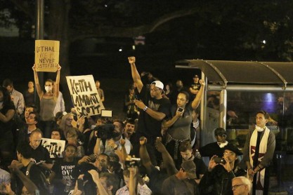 Cientos de personas protestaron en las calles de una militarizada Charlotte en la tercera noche de manifestaciones raciales pese a que rige un toque de queda decretado después del fallecimiento del hombre herido de bala este miércoles.