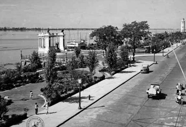 La avenida 9 de Octubre destaca con sus casas antiguas de madera, a inicios del siglo XX. Al fondo está la estatua en homenaje a los próceres de 1820 que fue construida para celebrar el centenario de Independencia de Guayaquil y donde además los guayaquileños de antes pasaban gran parte de su tiempo.