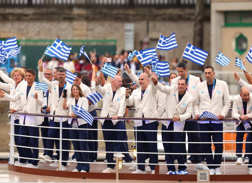 La delegación de Grecia y los atletas refugiados abrieron el recorrido de las embarcaciones por el río Sena.