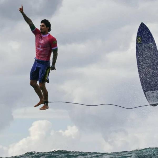 El logro quedó inmortalizado en una fotografía viral de la AFP en la que se ve a Medina con el puño levantado y su tabla flotando en el aire, justo después de salir de la ola.