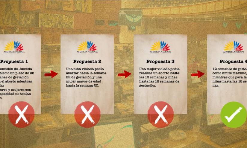 Pero los plazos cambiaron una vez más en el informe de mayoría. El 11 de febrero de 2022, la Comisión de Justicia, tras el segundo debate, modificó los tiempos hasta las 16 semanas de gestación para las mujeres mayores de edad, y 18 semanas para niñas, adolescentes, mujeres de la ruralidad, de pueblos y nacionalidades