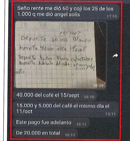 Los miembros de los Chone Killers enviaban fotografías de las transacciones y cuentas que realizaban a alias Negro Tulio. ( ) -