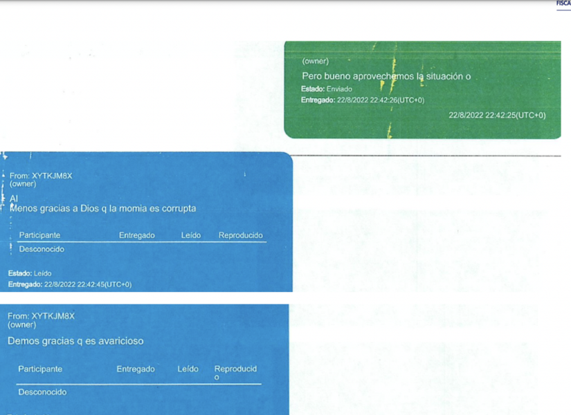 Asimismo, hablan de pagos a quien llaman 'La Momia', el juez Ronald G., "al menos, gracias a Dios que la Momia es corrupta (...) Demos gracias que es avaricioso".