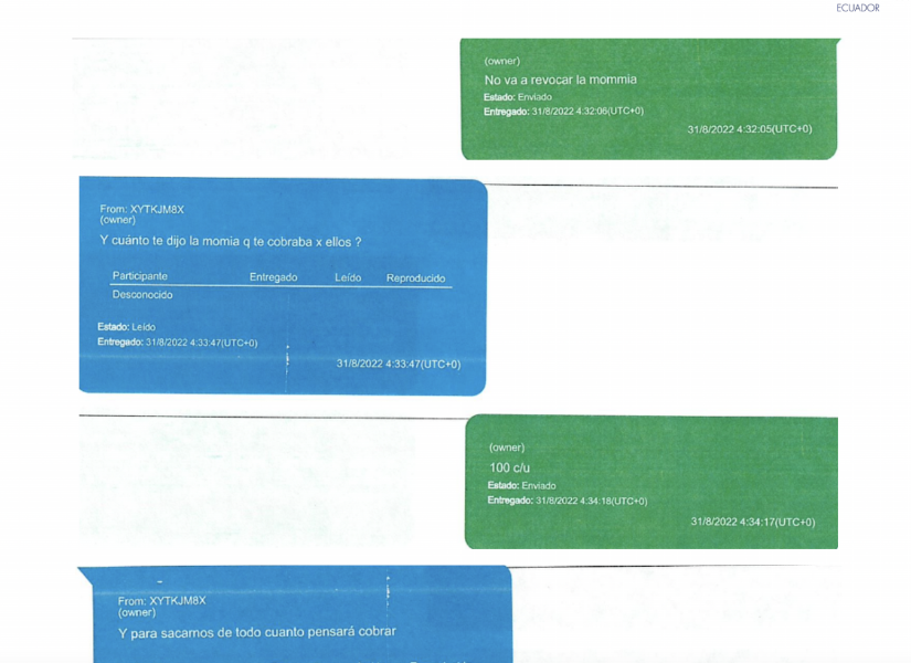 Aunque no es parte de los procesados en este caso, los chats publicados por la Fiscalía revelan conversaciones entre alias 'Dady Yanky' (Xavier J.) y Norero, en donde hablan de dar seguimiento a los movimientos de Fernando Villavicencio (+).
