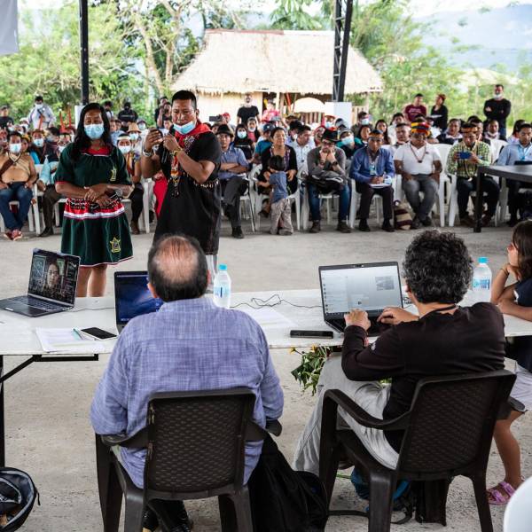 Hoy 15 de noviembre, la Corte Constitucional celebró por primera vez en la historia una audiencia en territorio indígena en la Amazonía. ¿El objetivo? En 2019 la institución seleccionó el Caso Sinangoe para su revisión, y desarrollar criterio constitucional sobre "el derecho de los pueblos indígenas a la consulta y consentimiento libre, previo e informado".