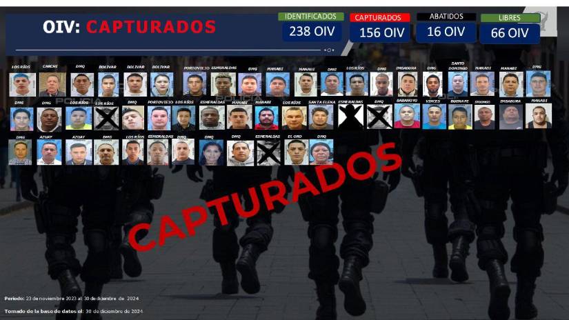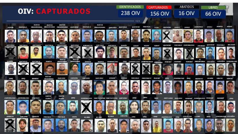 Mientras que alias Ben 10, de los Chone Killers, fue asesinado en Colombia. Y alias Fito, continúa prófugo. Las autoridades además han identificado a 238 objetivos de intermedio valor, de los cuales 156 fueron capturados y 16 abatidos.