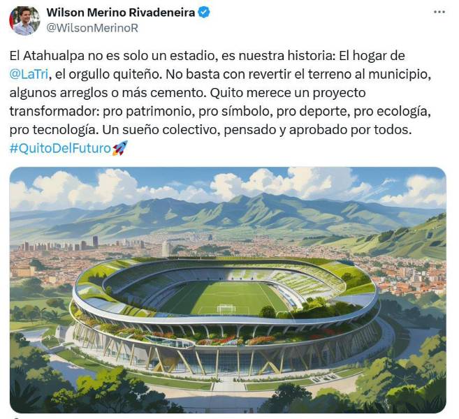 El concejal Wilson Merino es partidario de un proyecto "pro patrimonio, pro símbolos, pro ecología, pro turismo" para el estadio Olímpico Atahualpa. No está de acuerdo "con una mano de gato, con arreglos hechos al apuro y que buscan tener una rentabilidad política, electoral o de salvarse al corto plazo". Hay que tener en cuenta que el proceso de reversión del predio coincide con el proceso de revocatoria en contra de Pabel Muñoz.