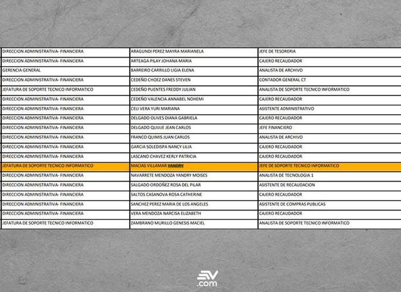 Él no es el único del círculo cercano de alias Fito que es funcionario público. Su cuñada, la esposa de Yandry, Genesis Z. también trabaja como analista informática en la empresa pública de Movilidad desde el 5 de mayo de 2019 hasta la actualidad, según datos de su declaración juramentada publicados en Contraloría.