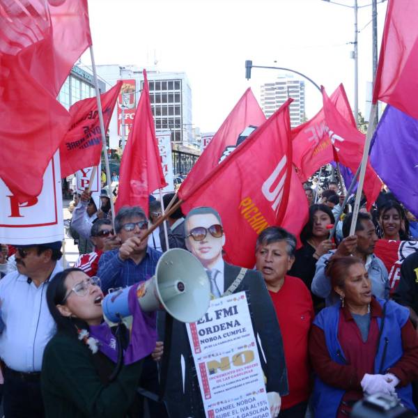 Organizaciones sindicalistas en una marcha contra Daniel Noboa.( )