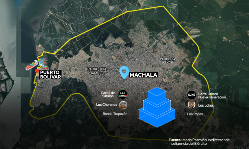 Espinoza confirma que ambas se disputan el territorio en Machala. "Los Lobos prácticamente abarcan la mayoría del territorio en la provincia de El Oro".
