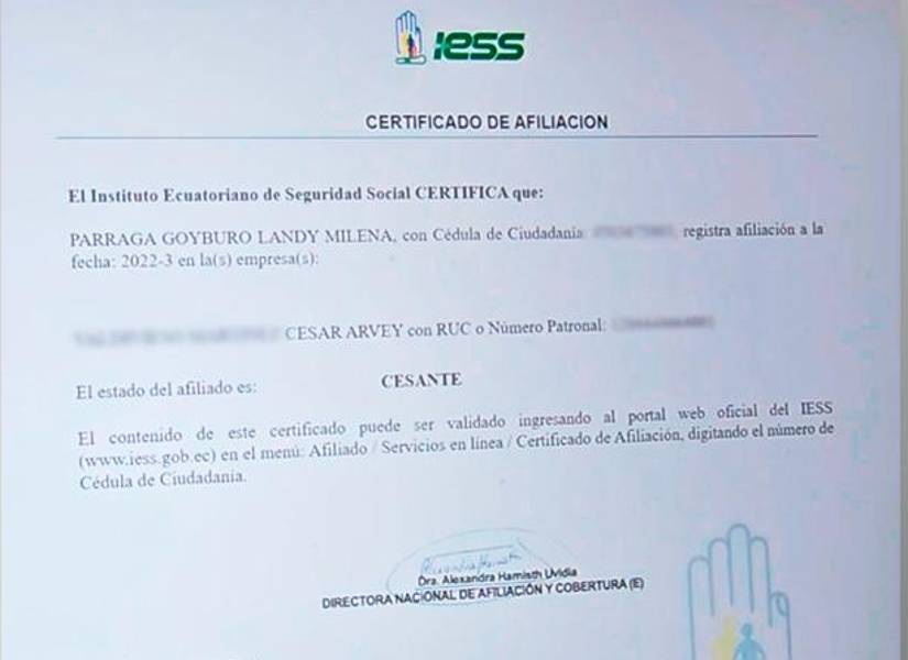 La expareja mencionada sería César V., de acuerdo con los registros del IESS. Landy Milena Párraga estuvo afiliada a él como su empleador hasta marzo de 2022. César V., de 41 años, se dedica a actividades agrícolas, específicamente al cultivo de tabaco en bruto, según su Registro Único de Contribuyentes (RUC).