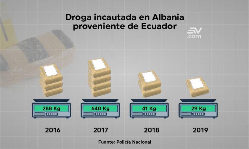 Entre 2016 y 2019, Albania, incautó una tonelada de droga proveniente de territorio ecuatoriano.