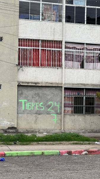 Esta organización declarada por el Gobierno en 2024 como terrorista, tiene su dominio en esa zona de Guayaquil. En otra parte de Socio Vivienda, como en los bloques de la etapa 3, en cambio está pintado la palabra tigres. Otro término con el cual se identifica a esa agrupación. También hay grafitis de manos con señas y la frase 'la W'.