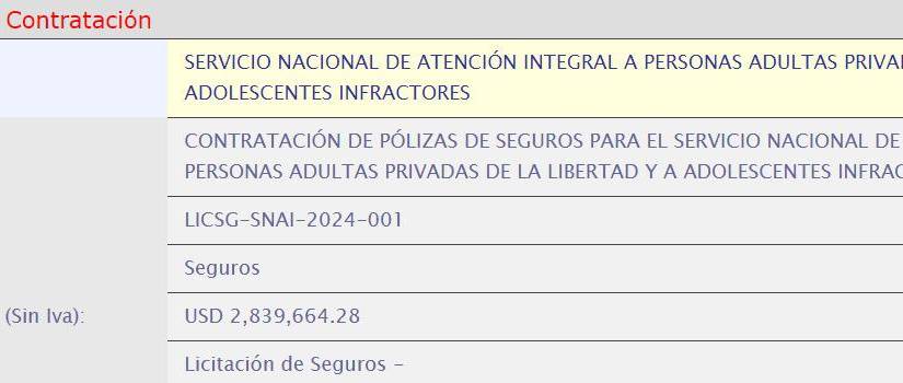 Según el portal de Compras Públicas, el Servicio de Atención a Privados de Libertad solicitó iniciar un proceso de contratación de pólizas de seguro para todas las entidades adscritas al SNAI. Entre ellas, los centros de privación de libertad. Esto para responder a los daños en bienes muebles e inmuebles producto de amotinamientos, incendios, robo, hurtos y siniestros. (Ver archivo)