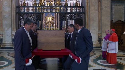 1. El féretro papal ingresó a la Basílica de Santa María la Mayor para su sepultura