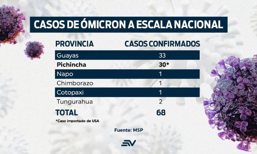 En Ecuador se han detectado, según el MSP, 68 casos de ómicron, para el investigador la cifra"es la punta del iceberg, la mayoría de contagios de estas últimas dos semanas se van evidenciar a mediados de enero y veremos los casos de ómicron”, vaticina Terán.