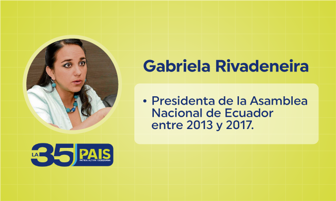 La sucesora de Cordero fue Gabriela Rivadeneira, estuvo al frente del poder legislativo entre 2013 y 2017. Dirigió una asamblea con una gran mayoría de 100 legisladores que dejó casi sin protagonismo a los 37 de la oposición. En 2017 ganó las elecciones como asambleísta nacional y fue la mujer más votada. Luego de la ruptura entre Lenin Moreno y Rafael Correa, se mantuvo en la defensa de Correa. Luego del estallido de Octubre de 2019, se fue a México junto con otros coidearios. Rivadeneira pidió asilo político alegando ser perseguida en Ecuador pese a que no hay una investigación relacionada a las protestas.