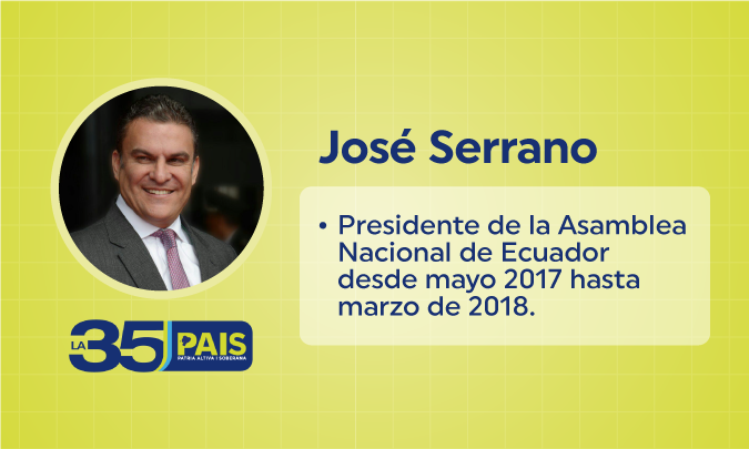 En 2017, José Serrano tomó la posta igual con una gran mayoría dentro del legislativo, 74 asambleístas. El escándalo por las conversaciones con el entonces contralor Carlos Pólit y su pelea con el Fiscal, Carlos Baca Mancheno hizo que lo destituyeran en marzo de 2018 con 103 votos a favor. Desde ahí perdió protagonismo dentro de la Asamblea Nacional.